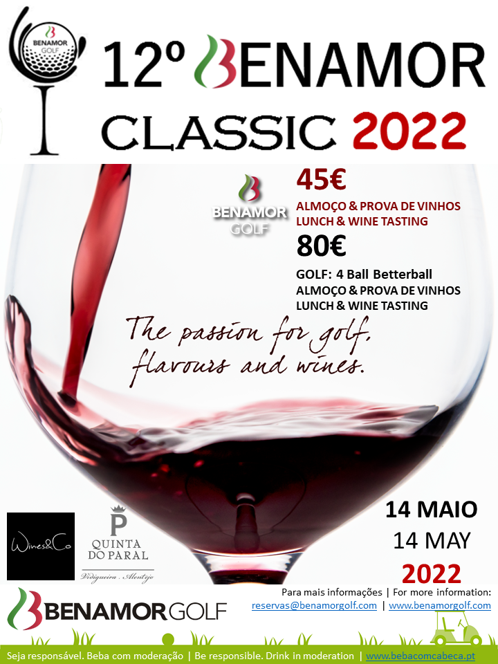 Benamor Classic Golf Tournament by Quinta do Paral - CANCELADO 14 May, 2022, 08:30 to 17:30 Venue: Benamor Golf We're sorry to inform our members and clients that this event has been cancelled. The Benamor Golf Administration