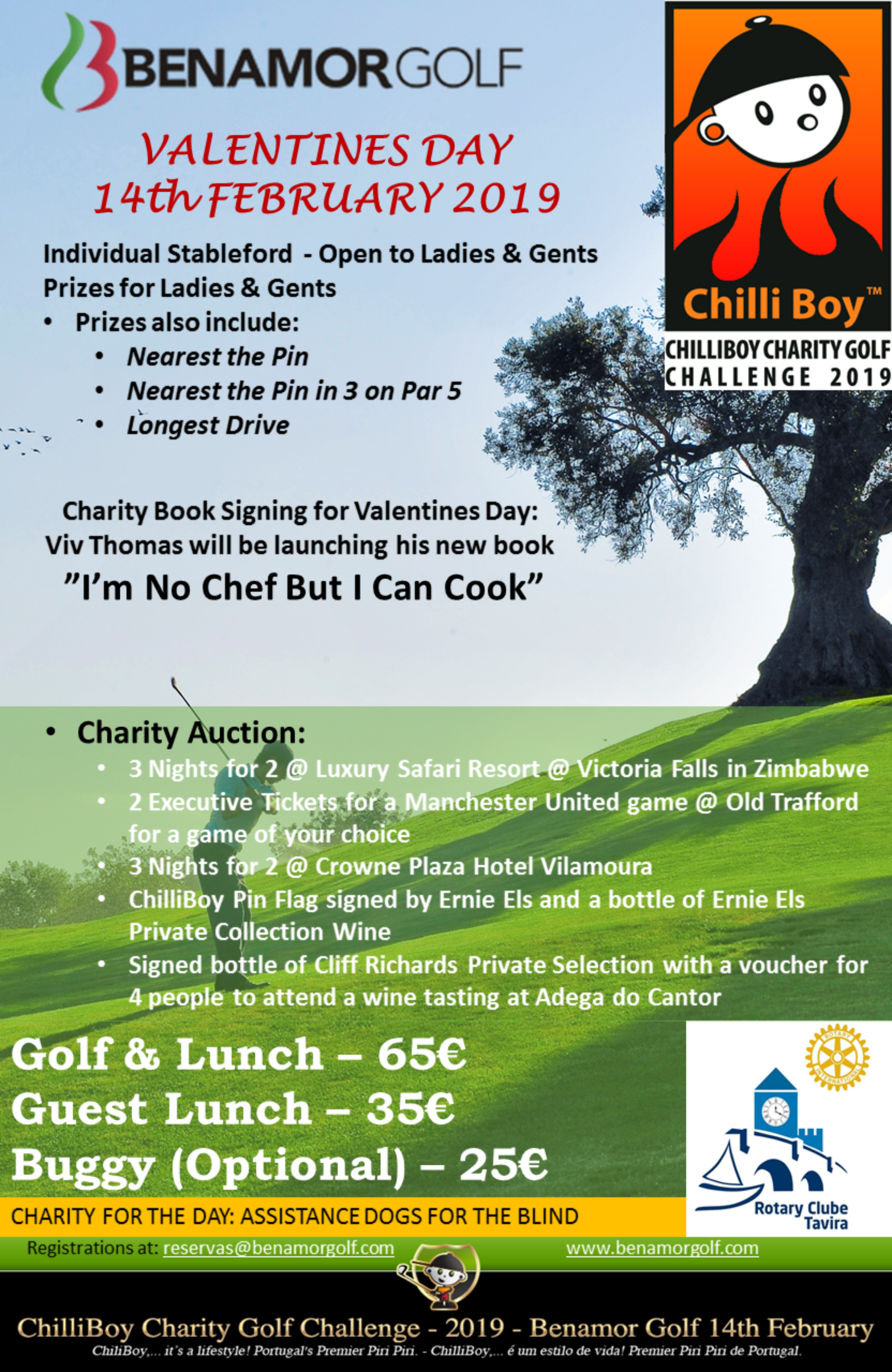 Benamor Golf será o palco do Chilli Boy Charity Golf Challenge 2019 a 14 de fevereiro no Dia dos Namorados, uma competição com formato Individual Stableford aberto para o público em geral. Saída Shotgun com início às 9h00.